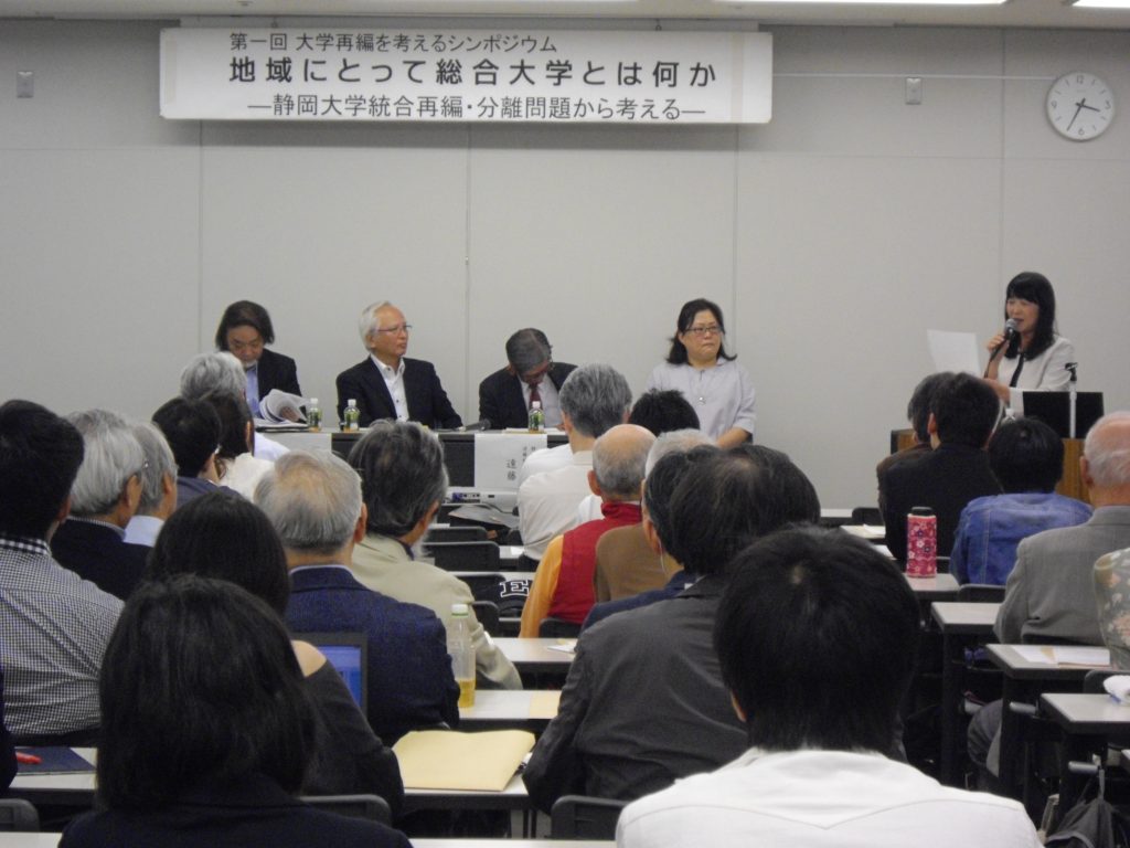 第一回大学再編を考えるシンポジウム「地域にとって総合大学とは何か―静岡大学統合再編・分離問題から考える」が2019年5月12日(日)に静岡県男女共同参画センター「あざれあ」で開催されました。 130名の方が参加され、大盛況でした。